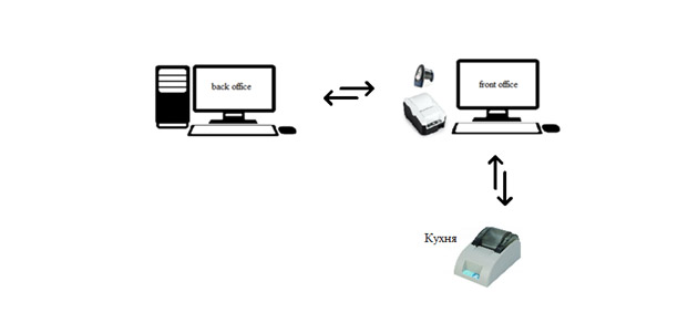 Официант на кассовом терминале (рабочей станции официанта) формирует заказ для клиента, выбирая на сенсорном экране заказанные блюда. На кухонных принтерах (на кухне и в баре) автоматически печатаются чеки (марки) заказа с указанием номера стола заказчика, официанта и блюд данной кухни (бара), входящих в заказ. По этим чекам официант получает блюда из кухни и бара. Марочник на кухне и бармен в баре проверяют отпуск блюд. Таким образом ограничивается недокументированное получение блюд и одновременно увеличивается скорость обслуживания. Одновременно на одном терминале работают несколько официантов и обслуживается множество клиентов. Для расчета с клиентом официант печатает счет. Если у клиента имеется дисконтная карта, то официант регистрирует ее и клиент автоматически получает скидки. Кассир принимает деньги у официанта и выдает фискальный чек. Администратор ресторана имеет возможность на своей рабочей станции наблюдать все заказы. Обычно только менеджер подтверждает заказы, возвраты, обмен блюдами между столами, продажу по свободной цене, дает скидки. Для печати из программы кассовых чеков необходимо подключение фискальных регистраторов. Для печати марки (заказ на кухню) используются чековые принтеры.
